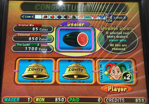 昨日と同様ベルのスペシャルボーナスで850winに!しかも全く同じ形で同じ倍率でした。いやー驚きました。ボーナススピンはこれがあるからいいですね。あと隣で友人もツインジョーカーズをしていましたが、なんと4枚放出がありました。並ばないという最悪な展開でしたが倍率が3倍と一転して大逆転に。友人も1000枚超えて2人とも4ケタクレジットいきました。