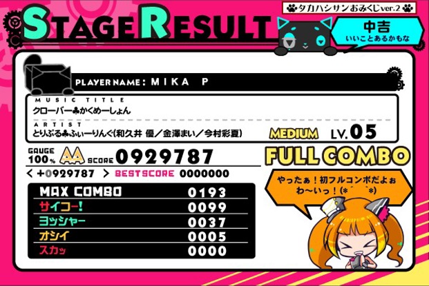 クローバー☘かくめーしょんのみフルコン。まあレベル5だし。