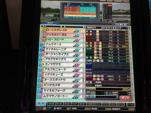 40BETした奴が直撃!ちなみに馬単76.8倍なので3072WIN!ボーナススピンZ換算でも結構当たったんじゃない。結構当たったのでここからMAX99BET。99BET×3の297BETで進める。