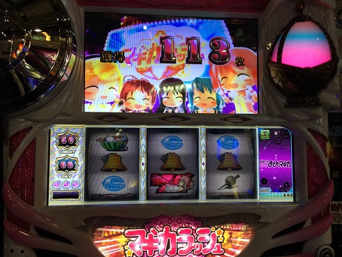 正直今日印象に残ったのはメダルゲームでなくまどか☆マギカ。今回のナビキャラはさやか。今回結構運が良かったのか30回くらいであたりを引く。プチボーナスだったけど。しかし、そのプチボーナスで再び来た!