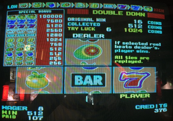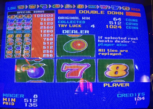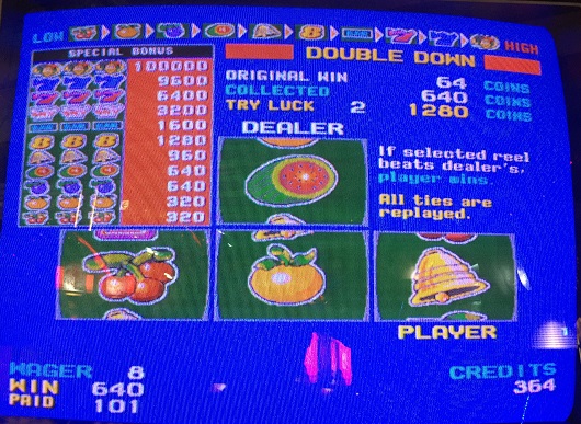 メダルゲームの方ですがほとんどやってないですがボーナススピンAとXは全然ダメ、メカスロもダメ…だったのですがボーナススピンZが良かったです。今回は8BETで行いました。個人的な8BET時のプレースタイルは500を突破するまでできるだけダブルダウンにかけるということです。(MAXBETでいう5000枚。5000はSIGMAの振り切りになる枚数です)フリー後は大体しないことが多いです。ひどい枚数ならさすがにしますが。まず2台あるうちの1つでメダル入れてすぐに