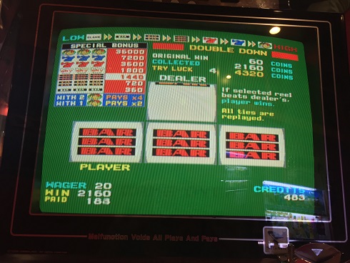 一応こんな奴が当たったのでゆっくり遊べた。ただ、1つ不満だったのは結構大きく当たったし39BETくらいにしようかと思ったらまさかのMAXBET20設定だったとのこと。しょうがないから20BETで遊びましたが。全部使い切る必要があったので使い切りましたが。それと誰かが私のプレイ見ていたけど、私が1000枚くらい当たりハーフダブルしているのを見て驚かんでも…普通大きく当たった時こそハーフでもいいから勝負するでしょ…