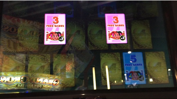 まずボーナススピンAですが、メダル3枚入れたらなんといきなりフリーが来ました。正直いきなりとは思いませんでした。銀カードでJOKERお兄さんがマルチリールを入れる動作を見せたのですが、1枚は引くものの3ゲーム3倍と微妙な結果に。96win(32倍)だったので当然ダブルダウン。一応1回勝ったのですがハーフ後に負けたので結局96winです。そして次のフリー突入時に