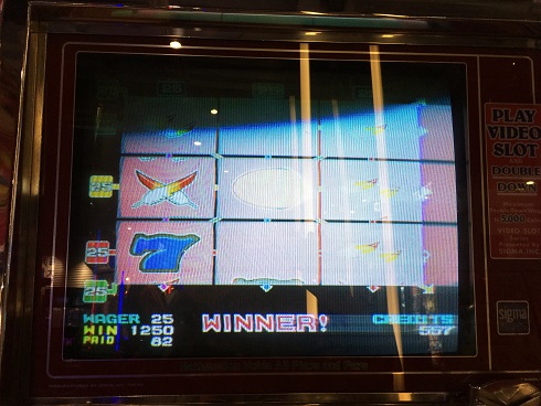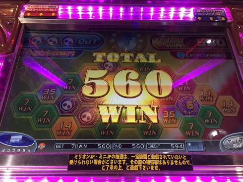 一応こんな感じ。ちなみに終盤にグランドクロスをプレイ。友人とした。友人とした理由としてはビデオスロットである程度高配当獲得したり、プッシャーでジャックポット取った時にサービス券がもらえるのだが、このサービス券を2人でかなり持っていたので一気に使用。そりゃもうカオスな状況だったなあ。ちなみに私はビデオスロットで大量に獲得できた。