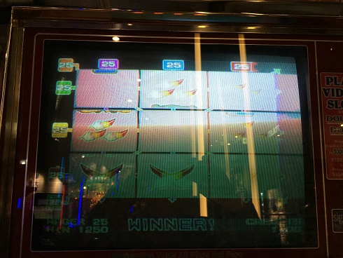 という表現になるのだろうか。と言っても全ての機種で負けたわけでもない。唯一25BETで反応したのはゴールデンフェニックス。まず777で500WIN。これをダブルダウンで1000枚。その後にBARや7が複数回揃う(でもダブルダウンは負ける)のでしばらくやっていたら来た。
