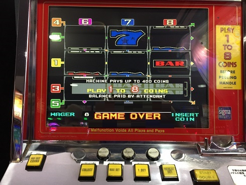 パトリオットの単体機。普通マルチ機(青)に入っているものが多いがこれは8BET機。なので80BETはできない。まあやったけど何にも当たらなかった(笑)でも普通に楽しめたけどね。