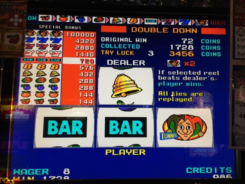全部ボーナススピンZ。チップあるから入れるの楽だ!特にTUNNEL込みBARの驚き。友人と一緒に興奮したね。これが最大の当たり。個人的にはANY7のスペシャルも驚き。ただ、個人的には強烈なスペシャルボーナスはもうちょっと後に来て欲しかった…