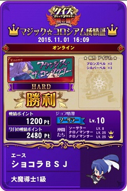その後は休憩しました。友人とQMAです。3回して2回勝ちました。1回目でポータブルオーケストラセットも手に入ったのですが、あれでかすぎでしょう。ARUZEボーナススピンよりでかいんですが…それともうそろそろ賢者になれそうです。あと少しです。ちなみにもう面倒なのでゴールドベルで昇格しようと思ってます。シルバーだと全然足りないので。