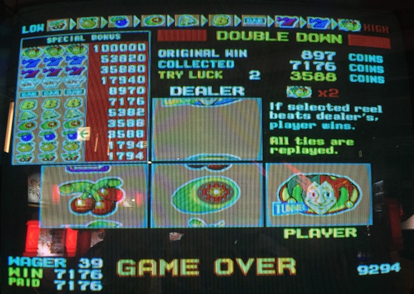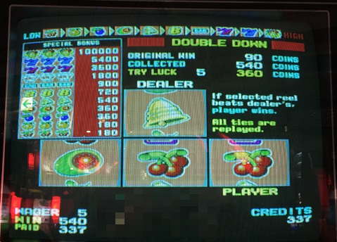 ダブルダウンでまさかの777来ました。枚数こそちょっと低いですが驚きました。