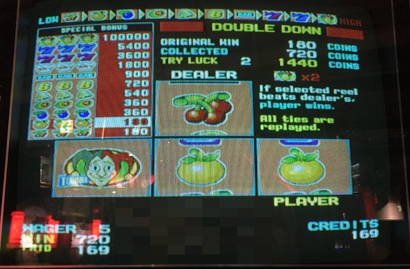 史上初のWILD ANY POSITIONを引き当て1500winに。たったの3BETで1500いくとは。しかもやってホントすぐに出たのでほぼ損失無しです。ただ一番右のWILDがライン上に来ていれば10000枚でした。滅茶苦茶惜しい!!!