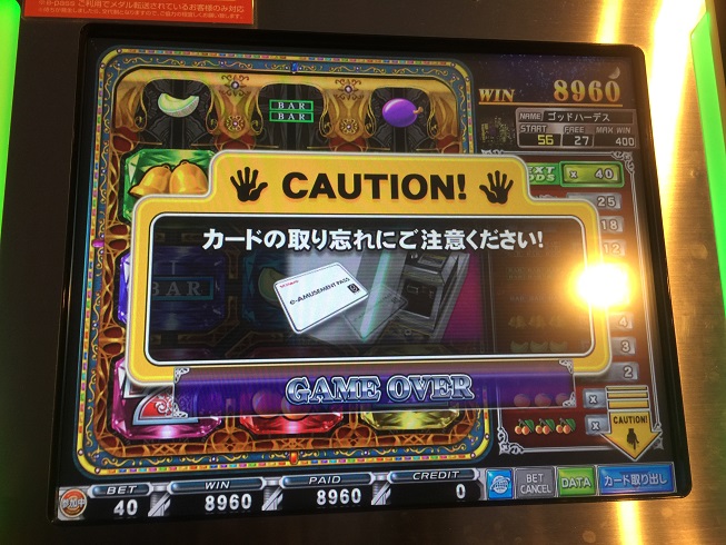ちなみに8960取れたときはDEALERプラムでベルを引き勝てた。が、困ったことに私の行っているラウンドワンの設定だと1万クレ超えるといちいちアテンダント食らうのでめんどくさい!8960+クレジット分アテンダントしてまたこの台に入れた…