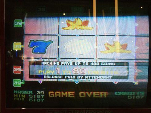前回もやったけど、今回もやりました。2人プレイ。2人プレイの長所はメダルを素早く入れることができるのでゴールドメダルがなくともハイベットプレイがしやすいこと。というわけで39BETで友人とプレイ。といっても減る時はかなり減るので慎重にプレイ。