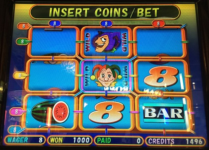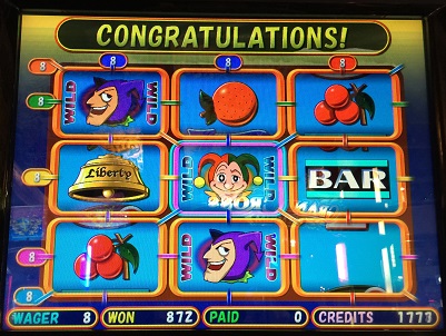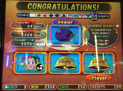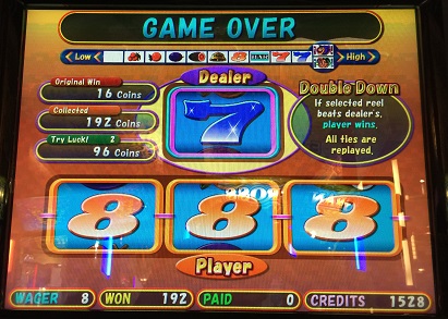 そのツインジョーカーズ。8BETでしていたらダブルダウンで384WIN。写真撮ってなかったけど、DEALER8でベルが揃い強制終了。