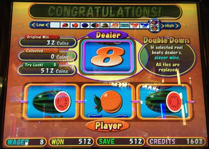 その後再びダブルダウンで500超えたのでハーフ攻め。512win。西瓜なら1024まで行けたのだが、フリー間をこの当たりでしのぐ!