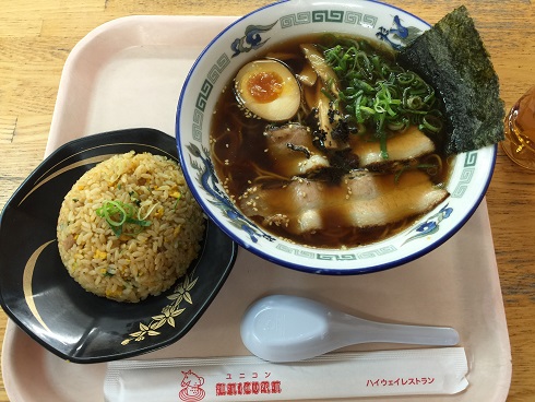 古賀SAにて昼食。ラーメンセットを注文。すごくうまい!ちなみにこっちも人がかなり多かった。といっても行列ができるほどでなく適度にいる程度。