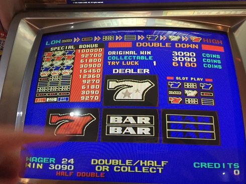 まずしたのがマルチ機。パトリオットをプレイ。ベット数は24、つまりラインベット3。ちまちましていくとまさかの展開発生!