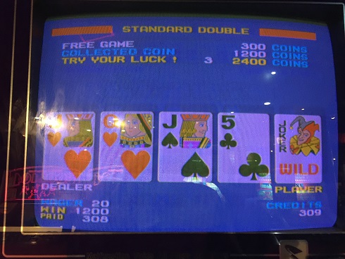 フリーゲーム有りのポーカー。(名前何だっけ?)これは20BETでプレイ。と言ってもこれしか当たってないが。ポーカー普段しないから攻略法がわからんwジョーカーおじさんでダブルダウンに勝っている。
