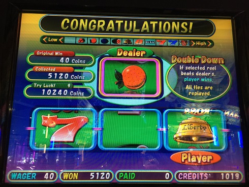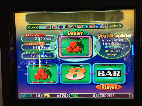 3回目が蜜柑…普通なら喜ぶところなのだが、経験上結構な確率でDEALER蜜柑に対しチェリーで負けている。しかも今日だけで4回負けているためKONAMIの罠だと思い負けを覚悟して叩いたらベルで事なきを得て7800枚になった。ちょうど200倍となった。