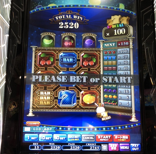 久々にトリプルBAR引いて900枚。(ホイール×3)