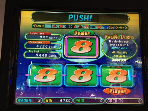 しかしダブルダウンで再びSIGMA振り切りを超えた!ハーフあるが。正直追加JOKER0とかふざけんなって感じだった。当然の如く怒りのダブルダウン。まあ5000超えたしいいでしょう。その後は遊び当たらなかったので5000枚でアテンダント。