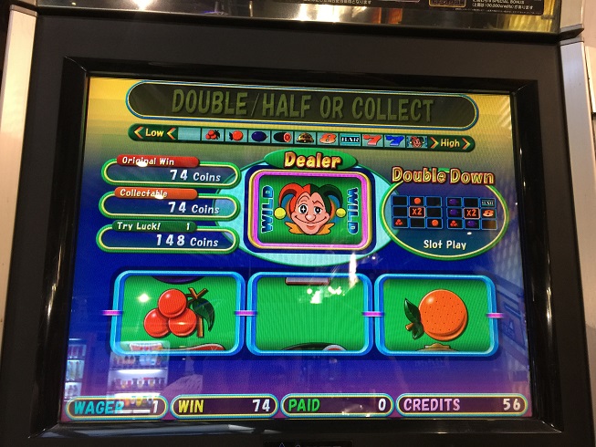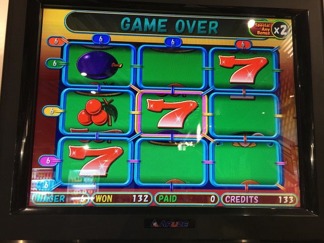 祝日ということで今日も懲りずに打ビデオスロット打ちに行きました。今日は私の最も好きなボーナススピンAをメインにプレイしました。少し多めにデータ取りしようと思い3BETで打っていました。もちろん当たった分次にのゲームにぶち込むやり方は相変わらず。ただ、途中であまりにも醜いフリーを引き続けてしまったため途中1BETに変えました。フリー自体は結構来てくれました。おそらく平均40~50とハイペースでフリーに来てくれました…のですが、倍率ははっきり言って全然だめでした。短時間で13回も引いたのに内容がいまいち…最もよくて74倍という消化不良に終わってしまいました。結構早くフリーが来たと書いてありますが、100ゲーム以上のハマりも2回ありました。その後のフリーが良くないというのがつらい…ただ、救いは6BETの時に2回も赤7が揃ったことでしょう。でもミステリーオッズはLinePayにかけてよ、JOKERお兄さん…20倍違うんですが。結果-700ときついスタートに。
