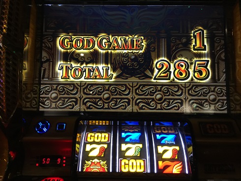 ハーデスは誰かやっていたので系譜(ZEUS)に座る。すぐに当たりを出したが、10ゲーム上乗せしただけで終了。後でハーデスにも座ったがこちらは全然当たらず…