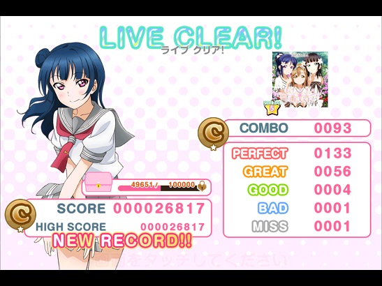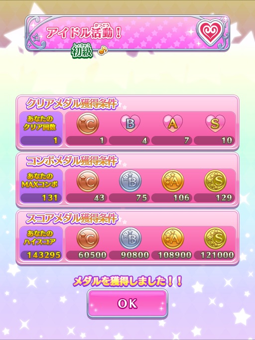 音ゲーの難易度としてはかなり簡単な部類で、最高難易度でも意外とあっさりクリアできたのでデレステ・スクフェスに比べるとかなり優しめ。