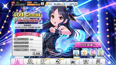一応さらっとプレイしてみたが、今回のボーダーどうなるんだろうねえ…でも私は基本ジュエルもドリンクもほぼ使わないでも自然回復のみでも100000位は入れるのでこれで行こうと思う。それとGrooveだと最後の追い込みもかなり難しいのでスタートダッシュが非常に重要。