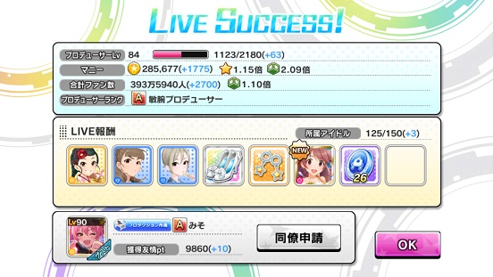 早苗のランクを一気に15に。これでパッションも☆15を作ることに成功。あとはクールだけ。なおキャラバン時のユニットの名前は全てまどか☆マギカより取ってる。