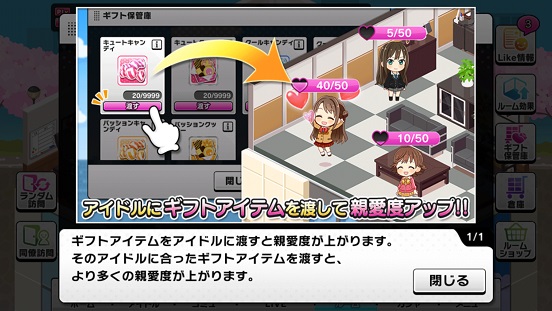 ギフトアイテム。要はアイドルに貢げば親愛度が上がる。でもこれ親愛度演出どうなるんだろう。既定の分行ったらいきなり画面が出てくるとか?