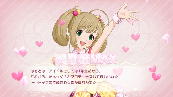 今のところRアイドルは7割がた親愛度MAX(50)にできている。さすがに150にする必要はないが。コミュだけ解放させればいいかと。