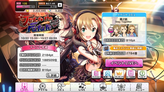 というわけではっきり言ってどうなるかまだ不明。なんかMASTER+がかなり難しいとか。今回幸いCOOLなのでフルコンできたらトロフィーくらいは行けるだろう。でも最近ポテンシャルとかMASTER+が当たり前のように出ているため、銀以上ははっきり言ってかなり難しい。というか並の実力及び課金では不可能な領域に…