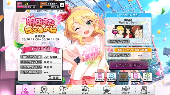 イベント結果は22154ptと1枚は確保可能なところまでは行けたので満足。