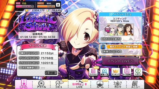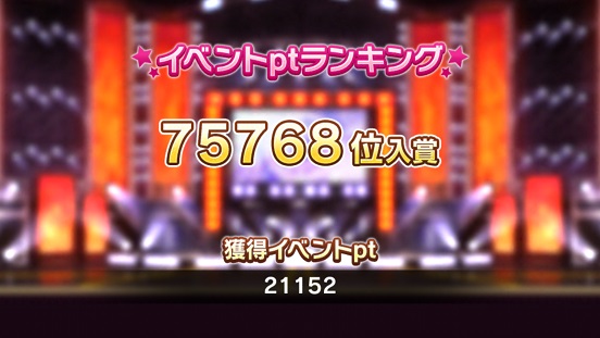 前の記事でも言った通りハイスコアがわずかに足らず銀トロフィー逃した。イベントポイントは余裕で120000位以上だったけど。