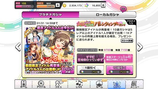 引いている人からするとどうでもいいが、当時引けなかったり、その時デレステやってない人はここで手に入れないともうしばらく手に入らないので頑張ろう。当然1点狙いは月末限定同様1/333。また廃課金の報告が出そう…ちなみに私は瑞樹はいるので実質狙うのはみりあのみ。確かにみりあも好きなアイドルではあるが、担当でもないのに1/333を狙うのは大変きついため納税のみで過ごします。(みりあ担当の方不快になったらごめんなさい)