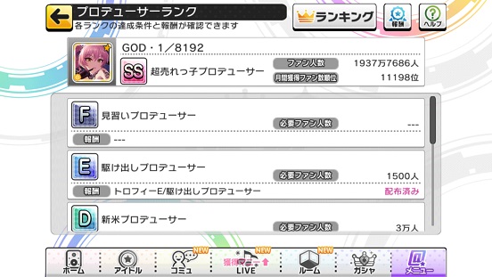 一応SSSランクの死闘を見るためにPRPを1000超すようにしたが、流石に私は1000位は狙わないだろうなあ。