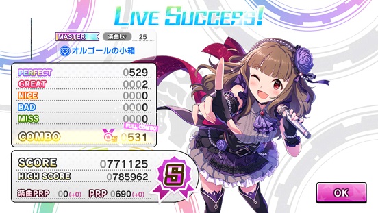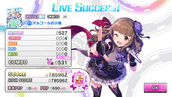 なんとバグ発生。なんと曲が始まらない!その間20秒程度。なんにもノーツ来てないのに特技が発動したりとネタにはなりそうだけど。
