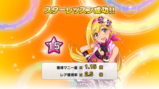 当然ながら残り3つのSR里奈。それと余ったのでジュエル150個ゲット!SR里奈を3つ交換したので何とか☆15完成!