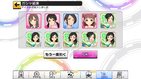 ちゃんと出た。今のところ2枚。まだまだ出てほしいが。今回レアアイドル以上が結構落ちてくるので