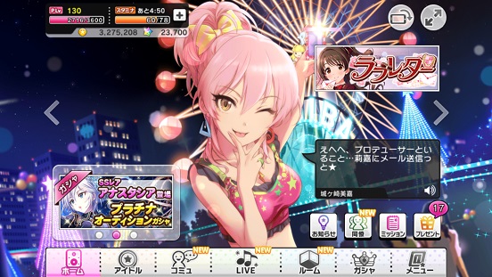 ガシャについての不満は天井がないこととSSRになるアイドルがほぼ決まっていることだろうか。