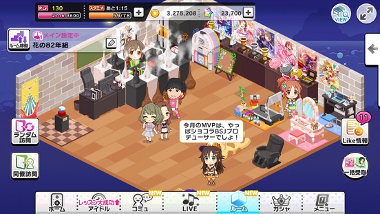 ただ、これには不満があり、イベントこなすと結構ルームアイテムが多くなり逼迫してくる。この辺どうにかできないかな…結構きつきつなんで…ルームはアイドル編成みたいに9つくらいあってもいいかなw
