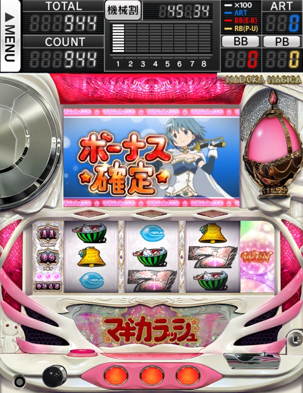 1点狙いはまどか☆マギカ設定3程度なのでこれを25回当選するまで回す。