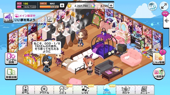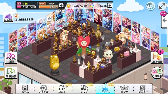 全てはここから始まった…画像はレベル10の時。ルームも一個しかなく、何かと不便だったころ…まさかここまで巨大コンテンツになるとは思わなかった。セルランでもガシャ更新で1ケタ行ったり、スカチケで1位になったりとすごい気がします。まあ賛否両論なシステムを搭載したのもあったけど、ここまでついてくる人たちもすごいのでは?まあアイマス、というかモバマスの基礎があったけどさ。