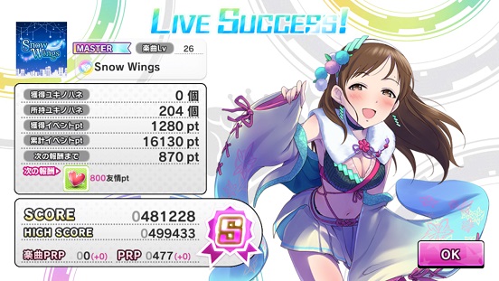 Snow Wingsもあと2日、今日と明日で全てが決まります。ちなみに昨日はMステ見てたからなあまりやってないですよ…と思いましたか?