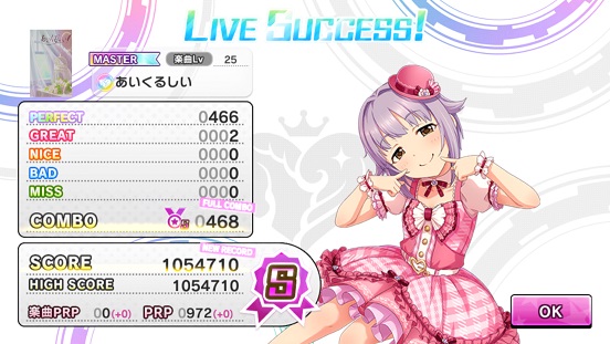 そのあとはMASTER+のみをプレイ。確かに今までよりかはやさしいね。でも中盤のロング&フリックでいっつも切ってしまうんだ。