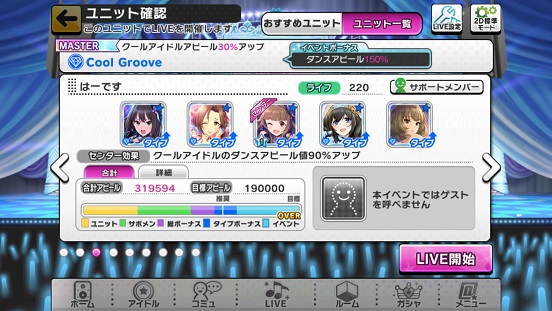 まず今回のイベントで噂になっていたのはMASTER及びMASTER+が簡単だと。私もじゃあ今回は行けるのかな?