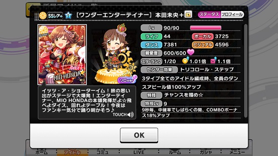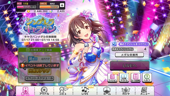 シンデレラキャラバンが終了。今回シンデレラフェスで手に入れたSSRを育成するために200回LIVEをこなしました。
