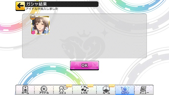 シンデレラフェスだけはビッグボーナス(SSR)が2倍の当選の確率になっているので設定6になる時を狙い、戦力を強化したいと思う。