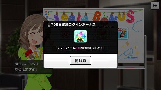レベル74?でやっとデスク(Pとちひろ)、属性アイテムがレベル10になるのでこれぞソシャゲの嫌らしさというものを感じさせられる。ここまで伸ばすのは結構大変。ここまできてようやくスタートライン。