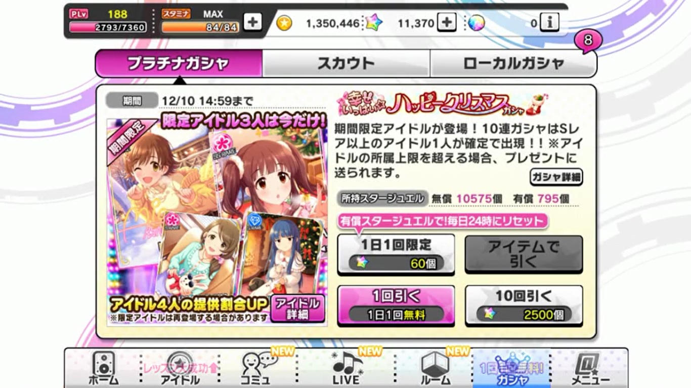正直常に1種類しかガシャがないので恒常SSRを狙うのは至難の業。タイプセレクトもあまりいらない。個人的に年齢ガシャとかユニットガシャとか特化ガシャとかするべき。スクフェスとかでも1年生限定・ユニット限定などある程度は狙いやすくなっている。